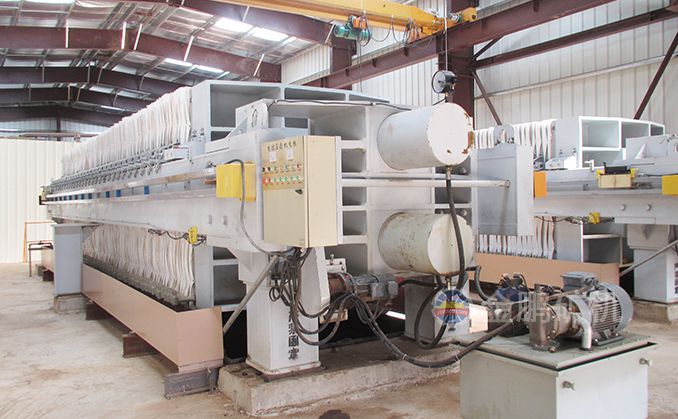 浸出槽最后的尾礦經(jīng)緩沖槽由泵輸送到全自動(dòng)廂式壓濾機(jī),壓濾后的水流入循環(huán)水池以備循環(huán)利用,濾餅經(jīng)帶運(yùn)輸機(jī)運(yùn)到尾礦堆場,卡車將尾礦運(yùn)到尾礦庫。