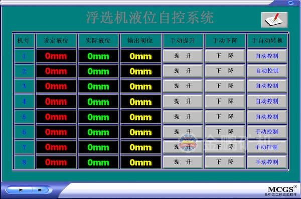 1、攪拌桶、浮選機(jī)及輔助設(shè)備的運(yùn)行狀態(tài)監(jiān)視與控制;